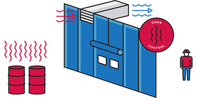Zoneworks wall systems can be used for industrial odor control in any type of industrial plant or commercial facility. Protect employee health and comfort, or prevent absorption of food or chemical odors into other products.